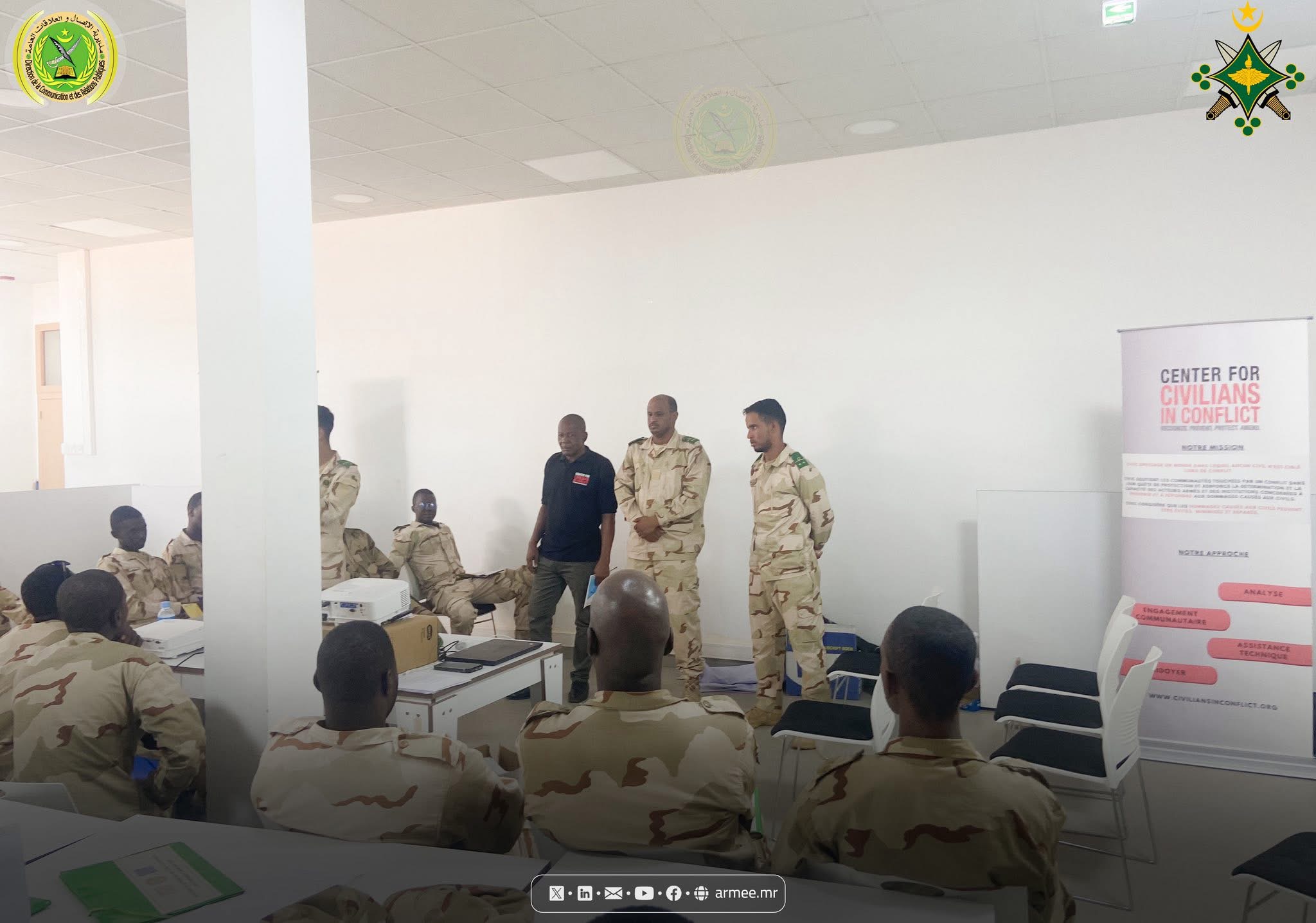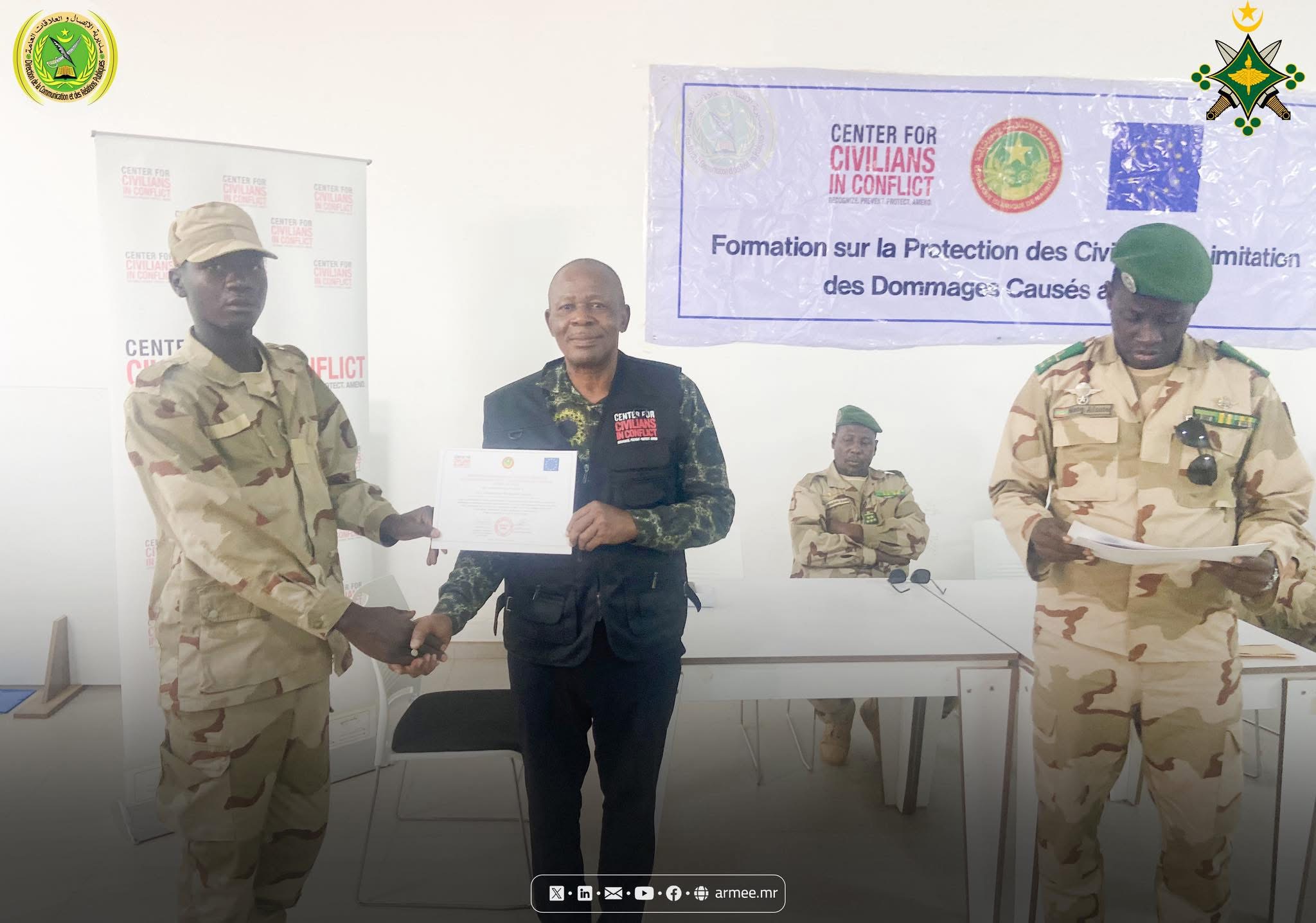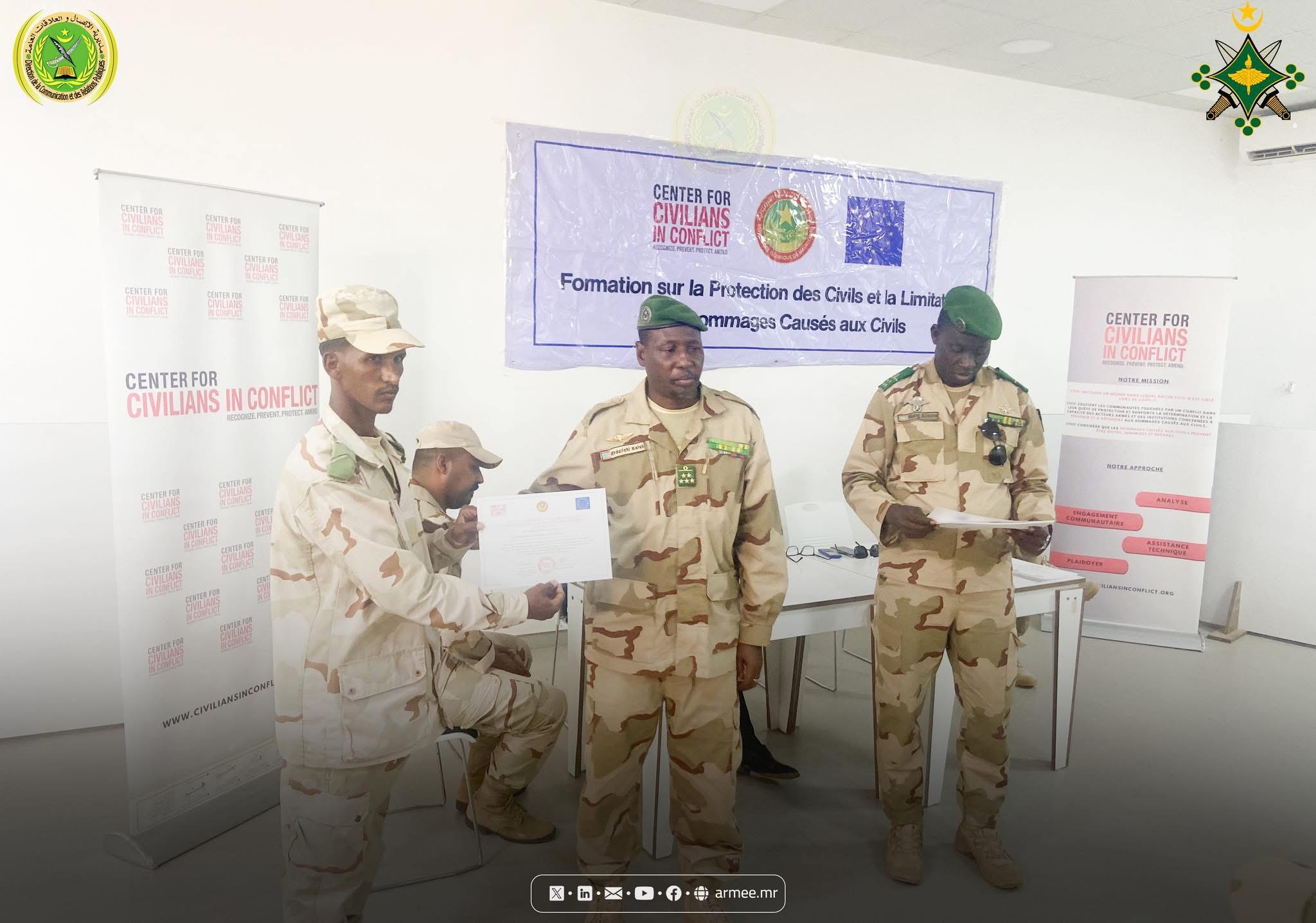 Le Colonel Abdallah Kallab, Commandant du bataillon mauritanien de la Force conjointe du G5 Sahel, a supervisé, le 17 octobre 2025, au siège du bataillon dans la commune N'Beiket Lahwach, la cérémonie de clôture d’un atelier de formation organisé par la Division des opérations de l’État-major général des armées, en collaboration avec le Centre pour la protection des civils en période de conflit (CIVIC), sous le thème : «Protection des civils et réduction des dommages causés aux civils dans les zones de conflit».