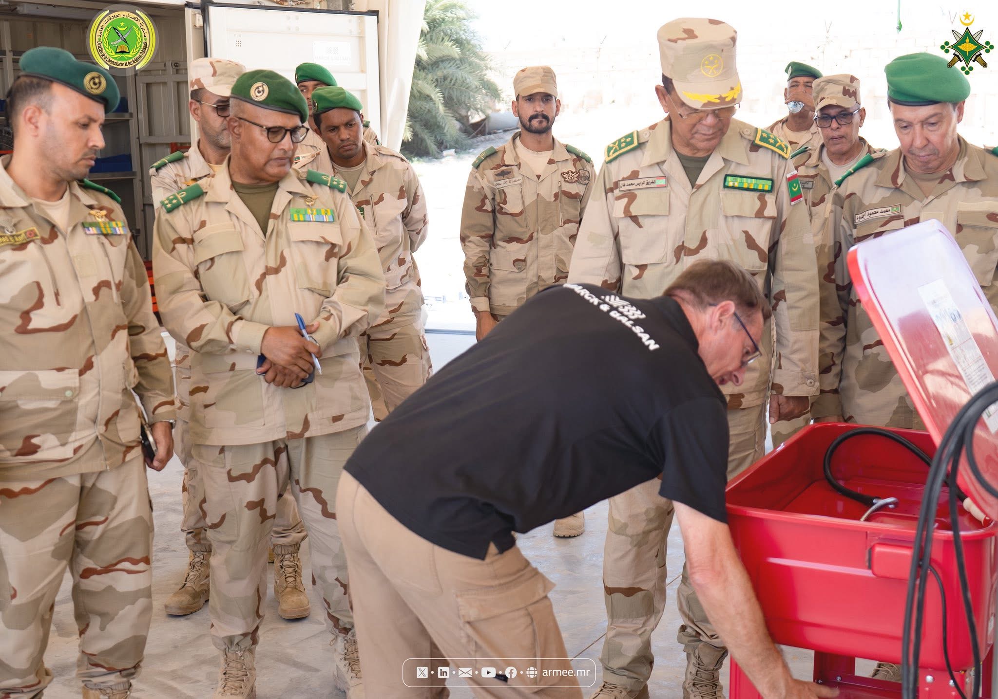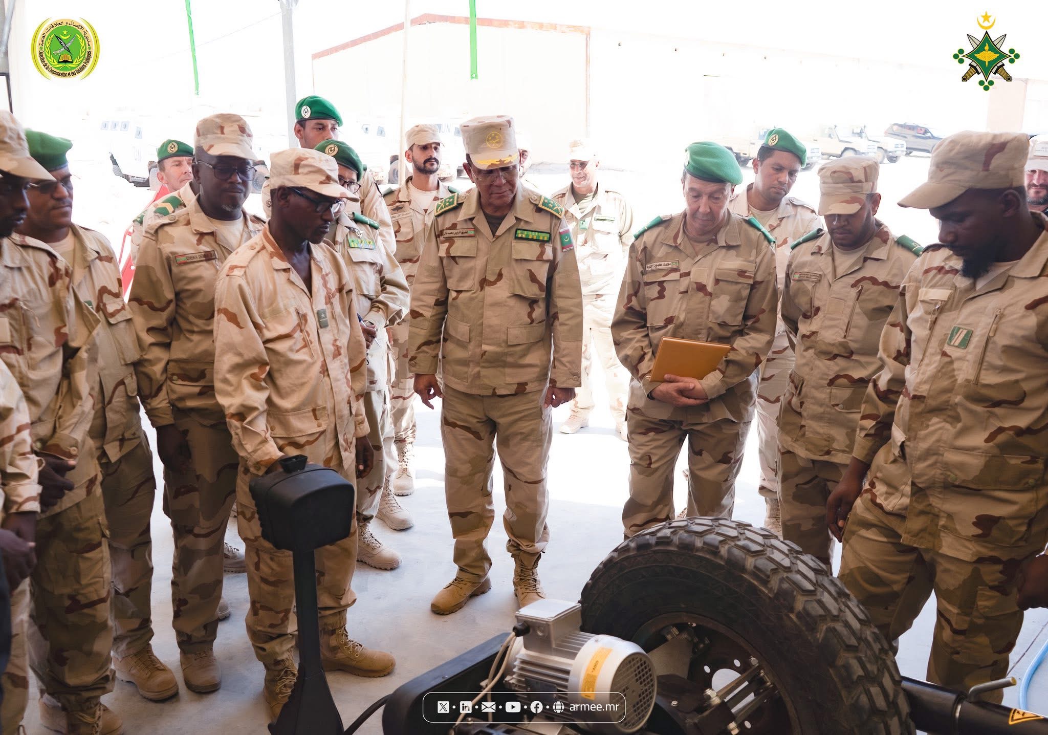 Le Général de division Mohamed Vall Rayess Rayess, chef d’Etat-major général des armées, a effectué, dans la matinée du 5 novembre 2025, une visite d’inspection à des ateliers mécaniques et à d’autres spécialisés dans la réparation des armes, au sein de l’Établissement central de réparation du matériel. À son arrivée, il a été accueilli par le Colonel Mohamed Mahmoud Ould Jedoud, directeur central du matériel, le Colonel Mohamed Valll Ould Mohamed Vadel, directeur central adjoint du matériel, ainsi que le Lieutenant-colonel Ahmed Mohamed El-Lab, commandant de l’établissement.