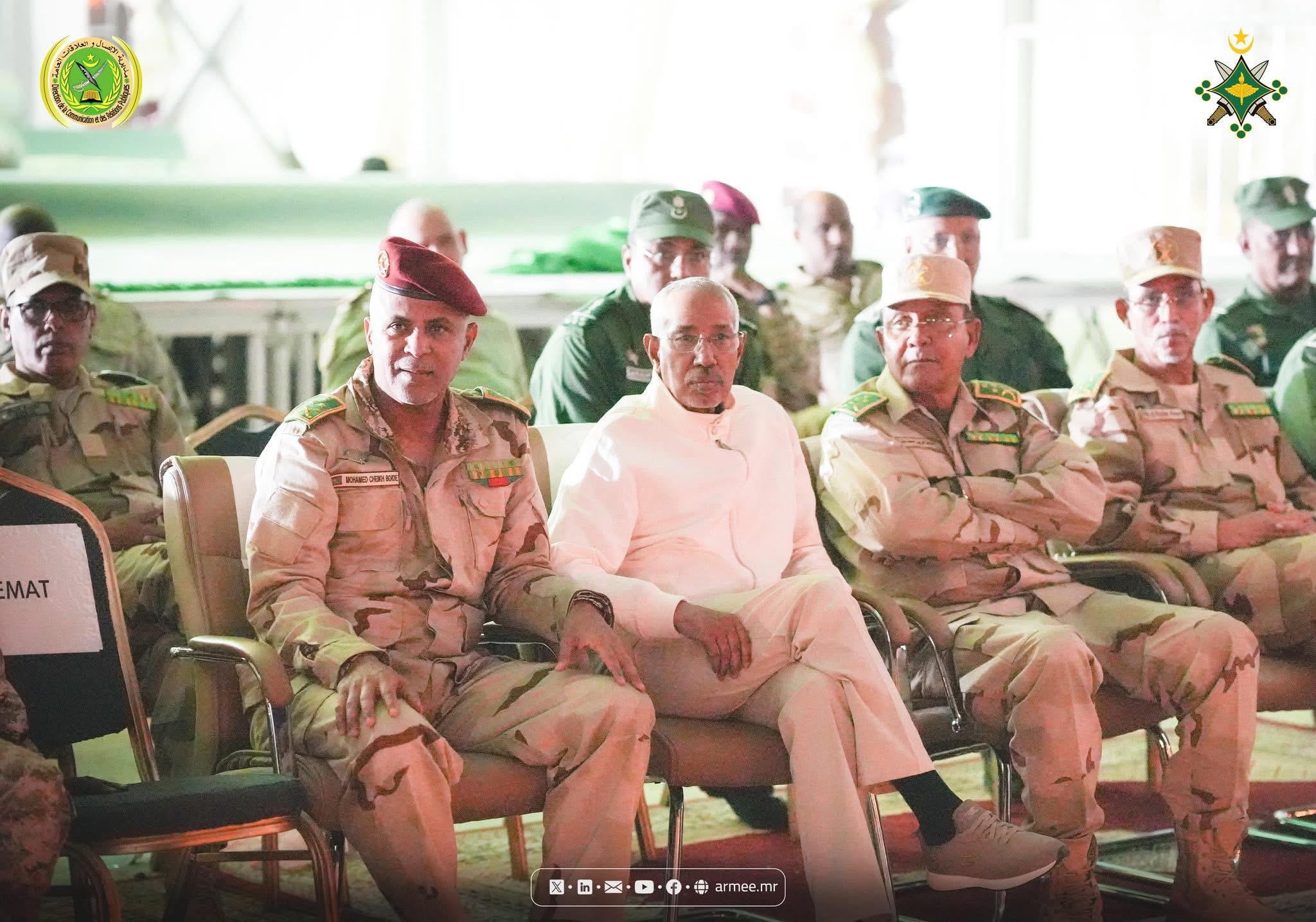 Étaient présents lors de l’inspection le général de division Mohamed Mokhtar Cheikh Menny, chef de l’état-major particulier du Président de la République, le général de division Ahmed Mahmoud Ould Taye, chef d’état-major de la Gendarmerie nationale, le général de division Mohamed El-Hafidh Khatari, commandant de l’Armée de terre, le général de brigade Mohamed El-Amin Blal, commandant des Forces spéciales, le général de brigade El-Hassan Meguett, Inspecteur général des Forces armées et des forces de sécurité, ainsi que le colonel Cheikh Abidine Maouf, chef d’état-major adjoint de la Garde nationale, et plusieurs chefs des divisions et directions de l’état major général des armées.