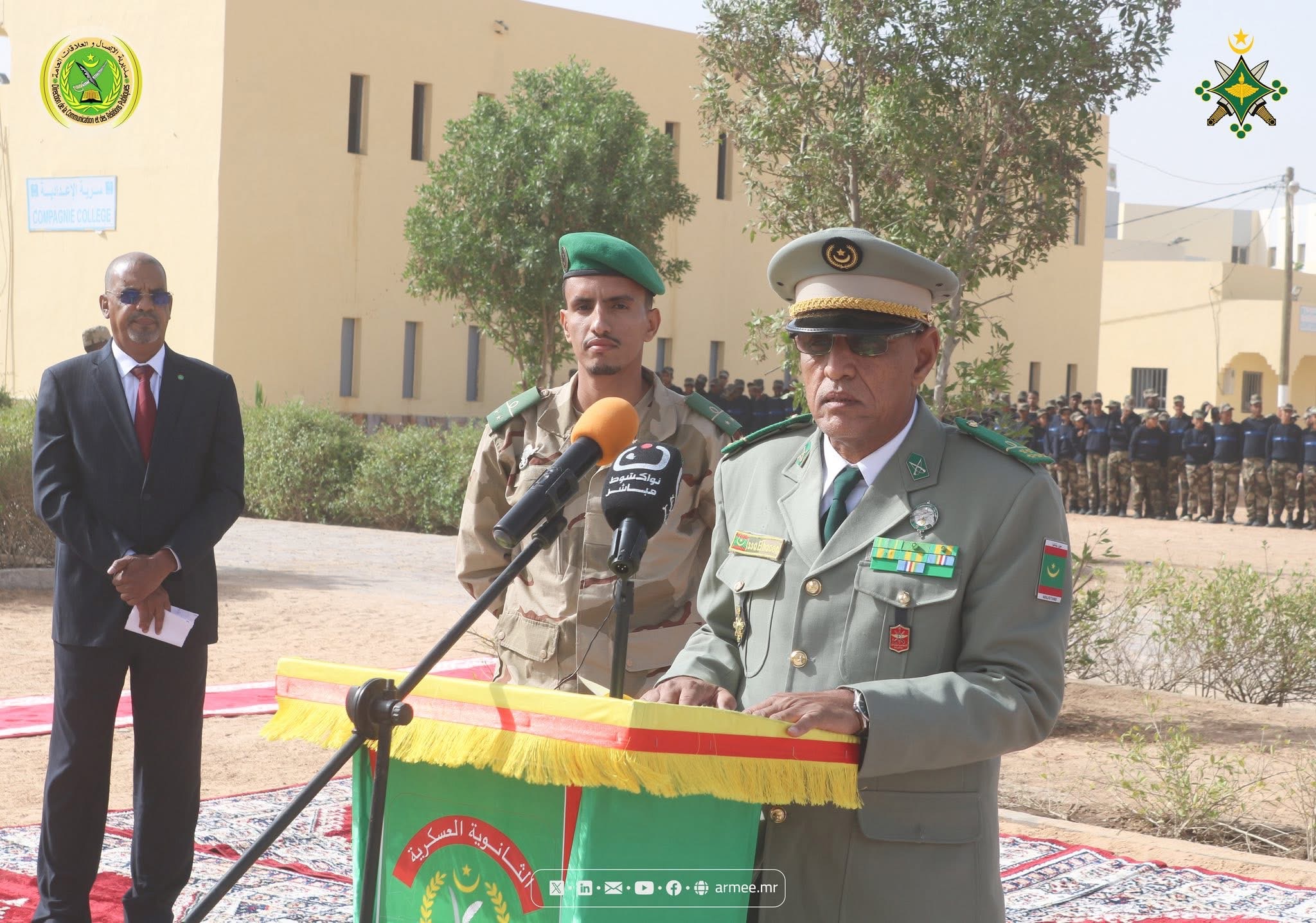 La cérémonie s’est déroulée en présence du colonel Sidi El Veirck, commandant l’Institut supérieur de langue anglaise, du colonel à la retraite Ely Laghna Ely, ancien commandant du lycée militaire, du lieutenant-colonel ingénieur Mohamed Salem Bheit, commandant adjoint du Groupe polytechnique, ainsi que du Hakem adjoint de la moughataa de Sebkha, M. Brahim Tashfine, et de l’adjoint au maire de la commune de Sebkha, M. Abou Djiby Dia, aux côtés de cadres, enseignants et représentants des parents d’élèves.