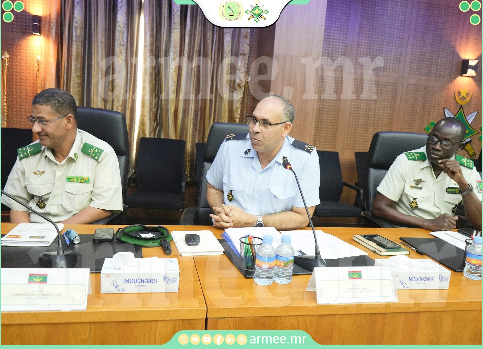 Les deux délégations ont tenu une série de réunions de travail au centre des conférences de l’État-Major général des armées, sous la présidence du général de brigade Sidati Ould Hammadi, chef de la division des ressources humaines. Ces échanges ont porté sur l’évaluation des activités conjointes réalisées au cours de l’année, ainsi que sur la planification et le suivi des activités prévues pour l’année en cours, en plus de l’examen de nouvelles perspectives visant à renforcer la coopération militaire bilatérale entre les deux pays.