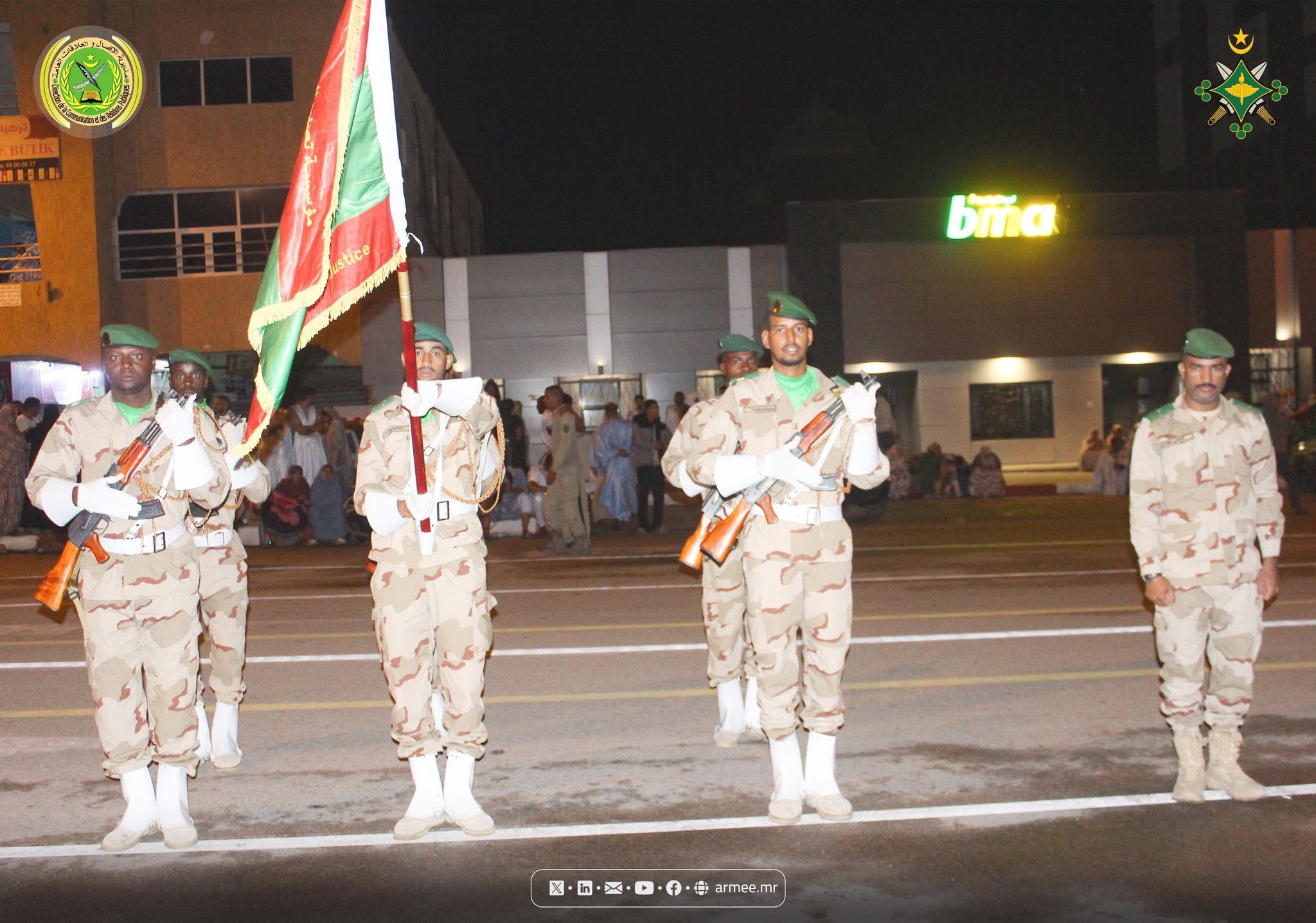 تفقد معالي وزير الدفاع وشؤون المتقاعدين وأولاد الشهداء السيد حننه ولد سيدي رفقة الفريق محمد فال الرايس الرايس قائد الأركان العامة للجيوش، فجر اليوم الإثنين المسير العسكري المحضر للعرض العسكري، المزمع تنظيمه بمناسبة الذكرى الخامسة والستين لعيد الاستقلال الوطني.