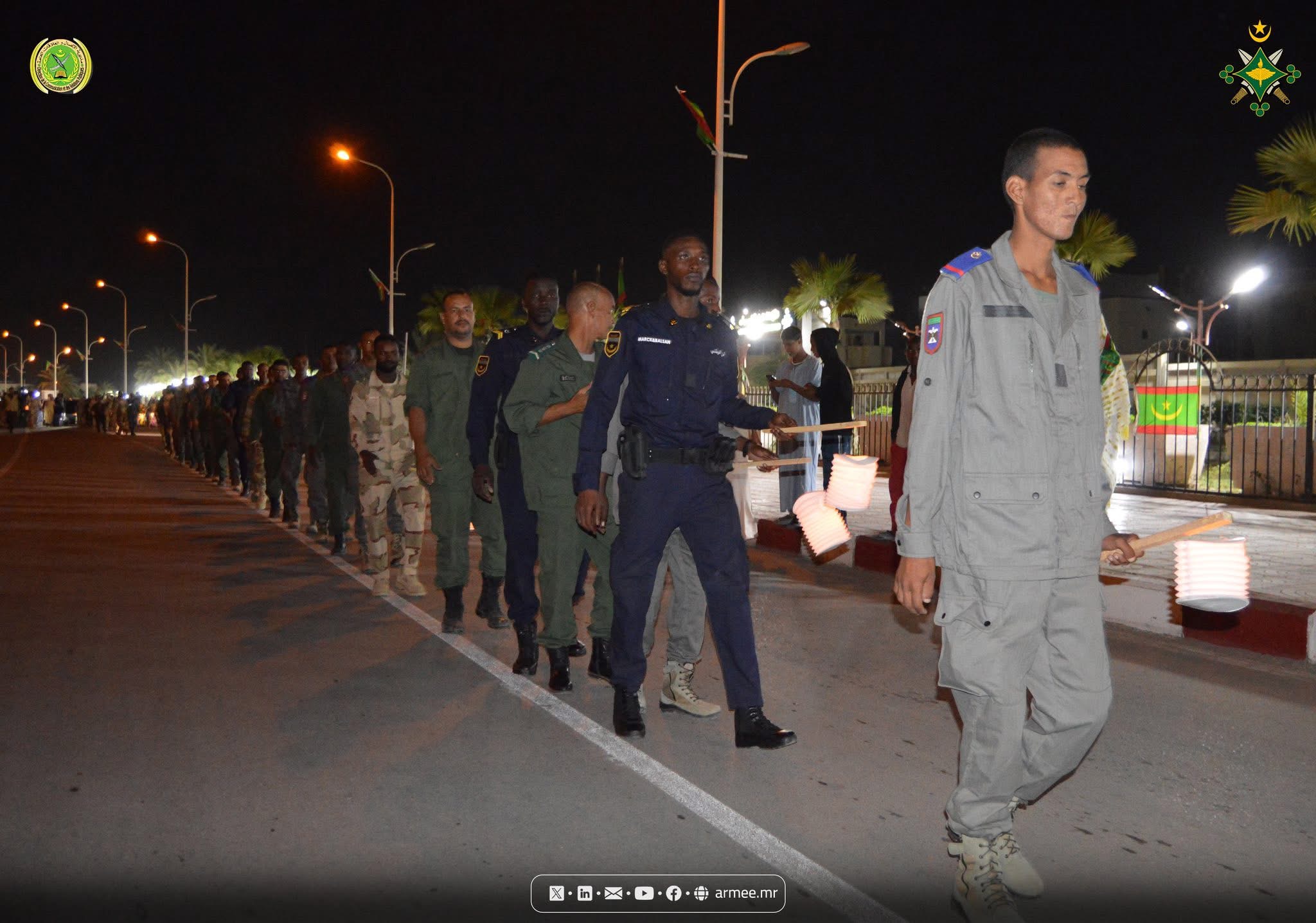في إطار فعاليات تخليد الذكرى الخامسة والستين لعيد للاستقلال الوطني وتأسيس القوات المسلحة، نظمت كتيبة القيادة والخدمات بالأركان العامة للجيوش، مساء اليوم الخميس 27 نوفمبر 2025، مسيرا راجلا لحمل المشاعل.