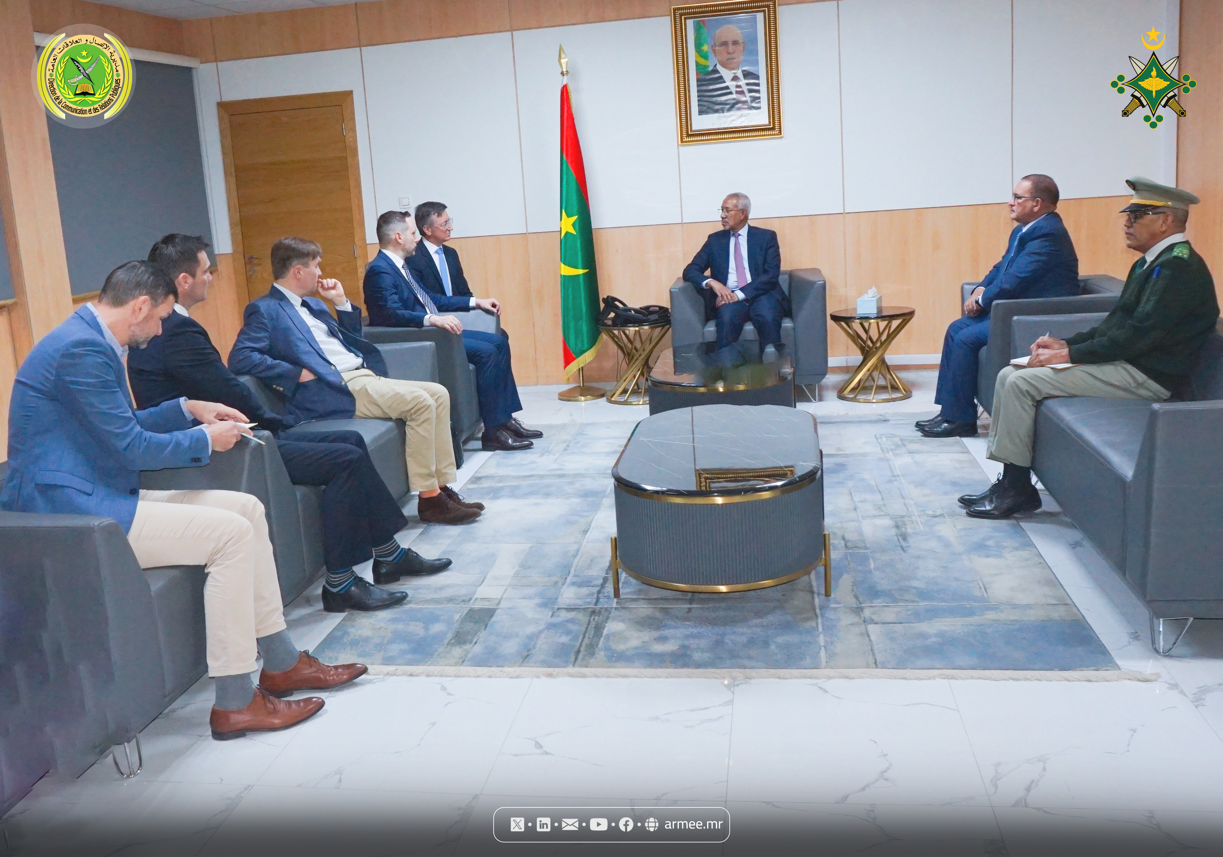 حضر اللقاء، العقيد إسحاق عبد الله إبراهيم؛ الأمين العامة لوزارة الدفاع وشؤون المتقاعدين وأولاد الشهداء، والعقيد سالم إسويدي؛ مدير التشريع بالوزارة.