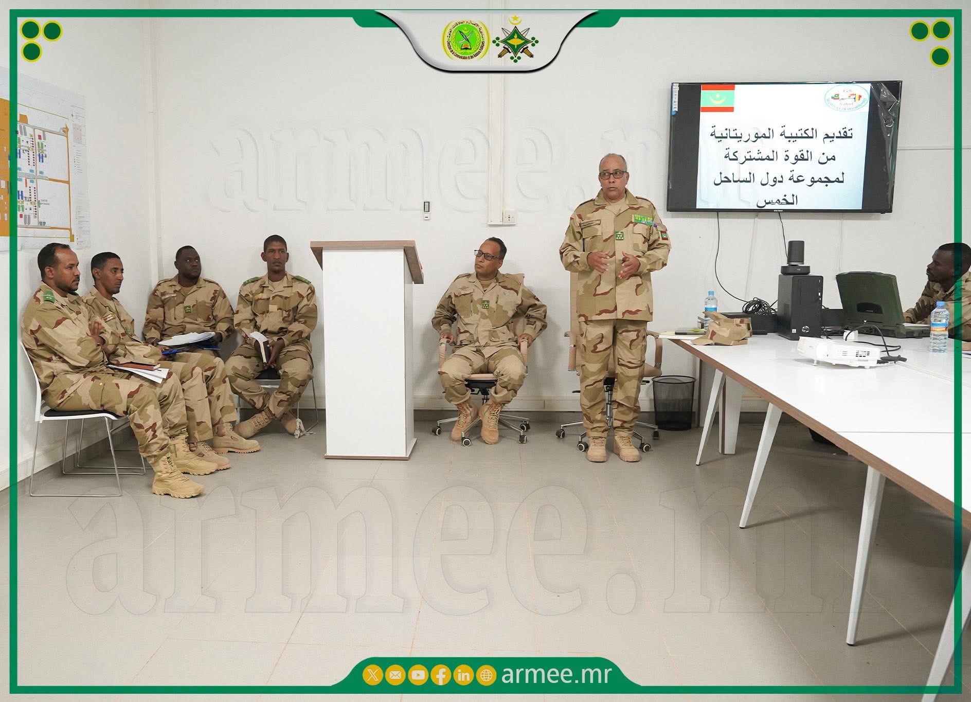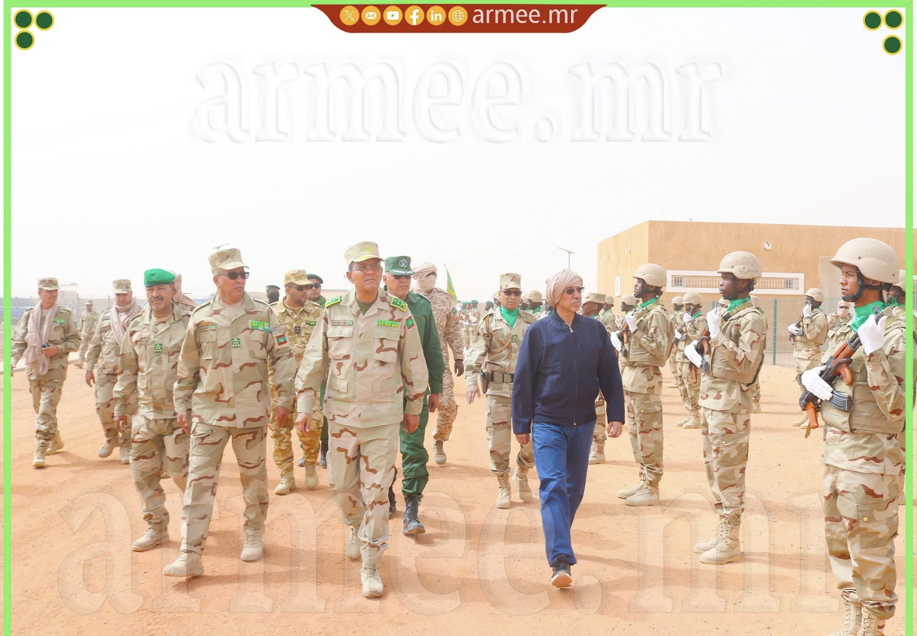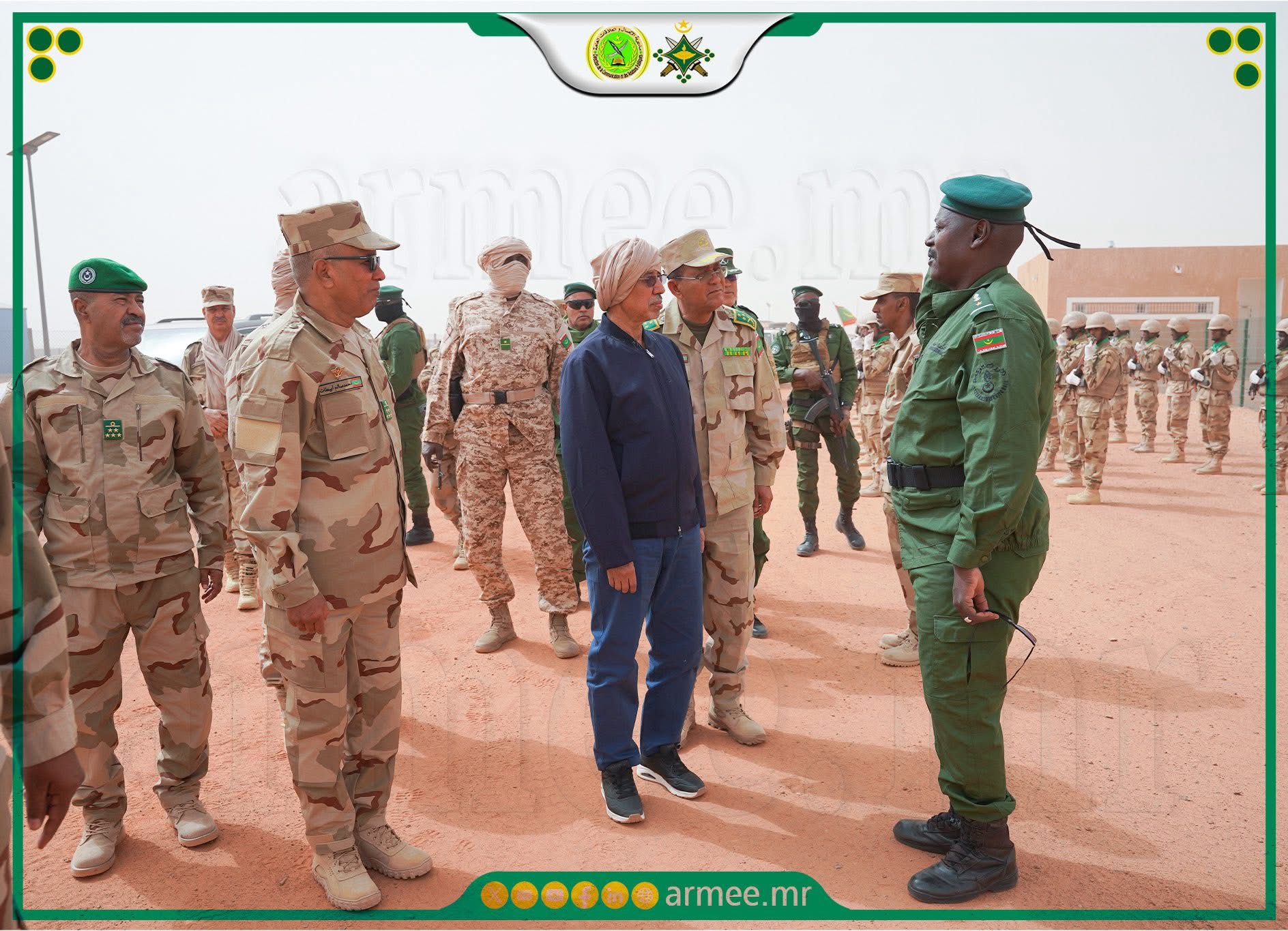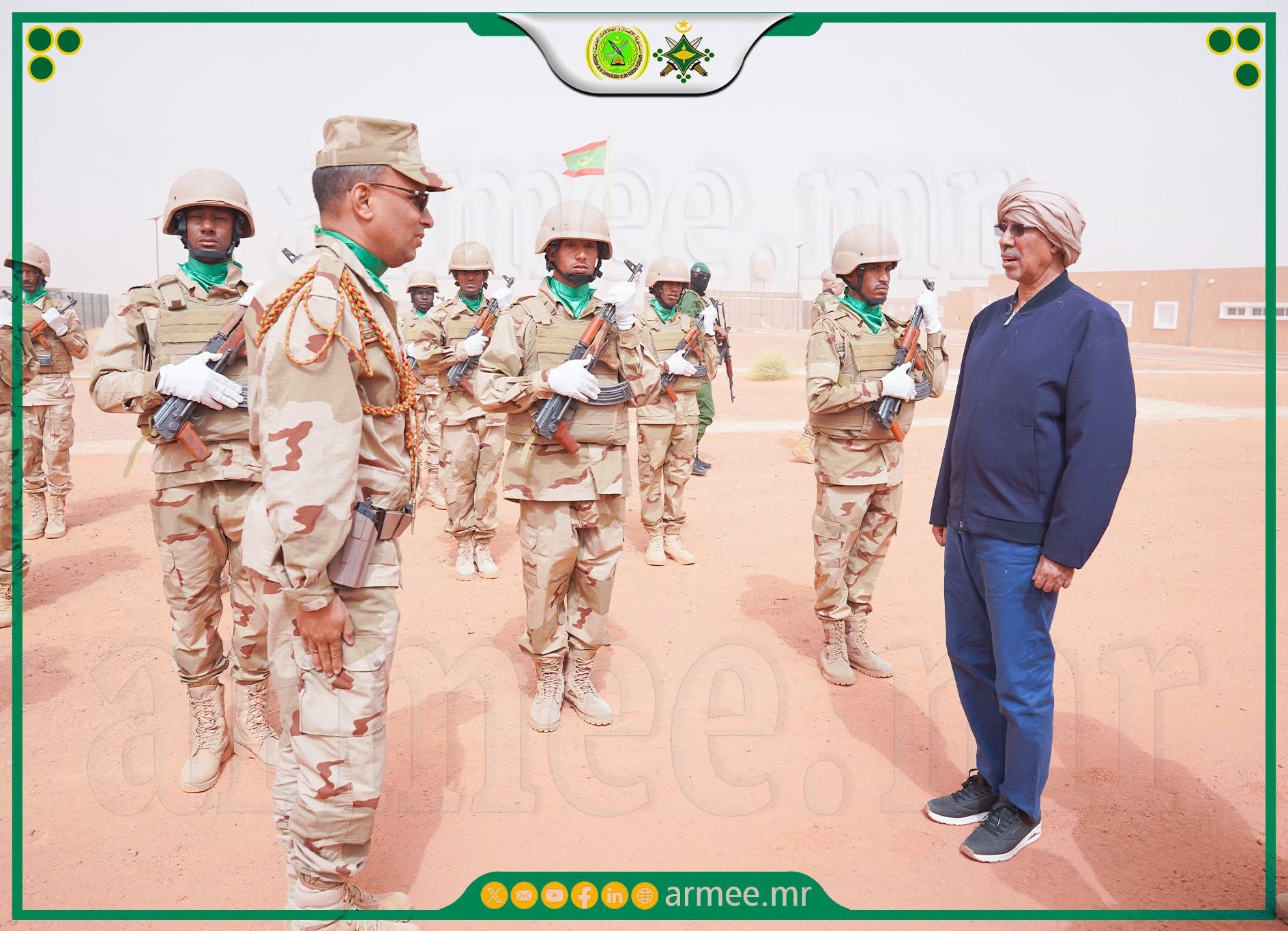 أدى معالي وزير الدفاع وشؤون المتقاعدين وأولاد الشهداء؛ السيد حنن ولد سيدي، وقائد الأركان العامة للجيوش؛ الفريق محمد فال الرايس الرايس، صباح اليوم الثلاثاء 31 مارس 2026، زيارة تفقد واطلاع للكتيبة الموريتانية للقوة المشتركة لمجموعة دول الســـاحل الخمس.