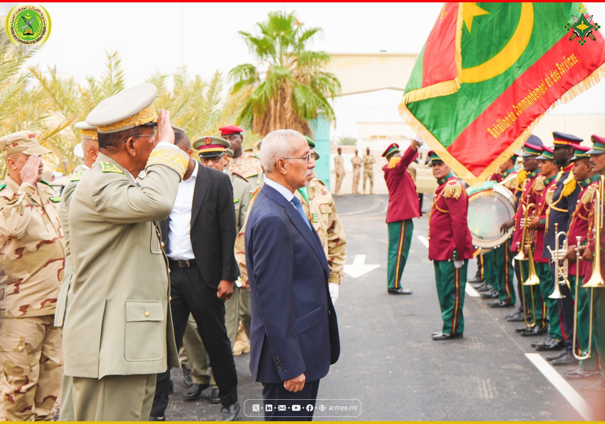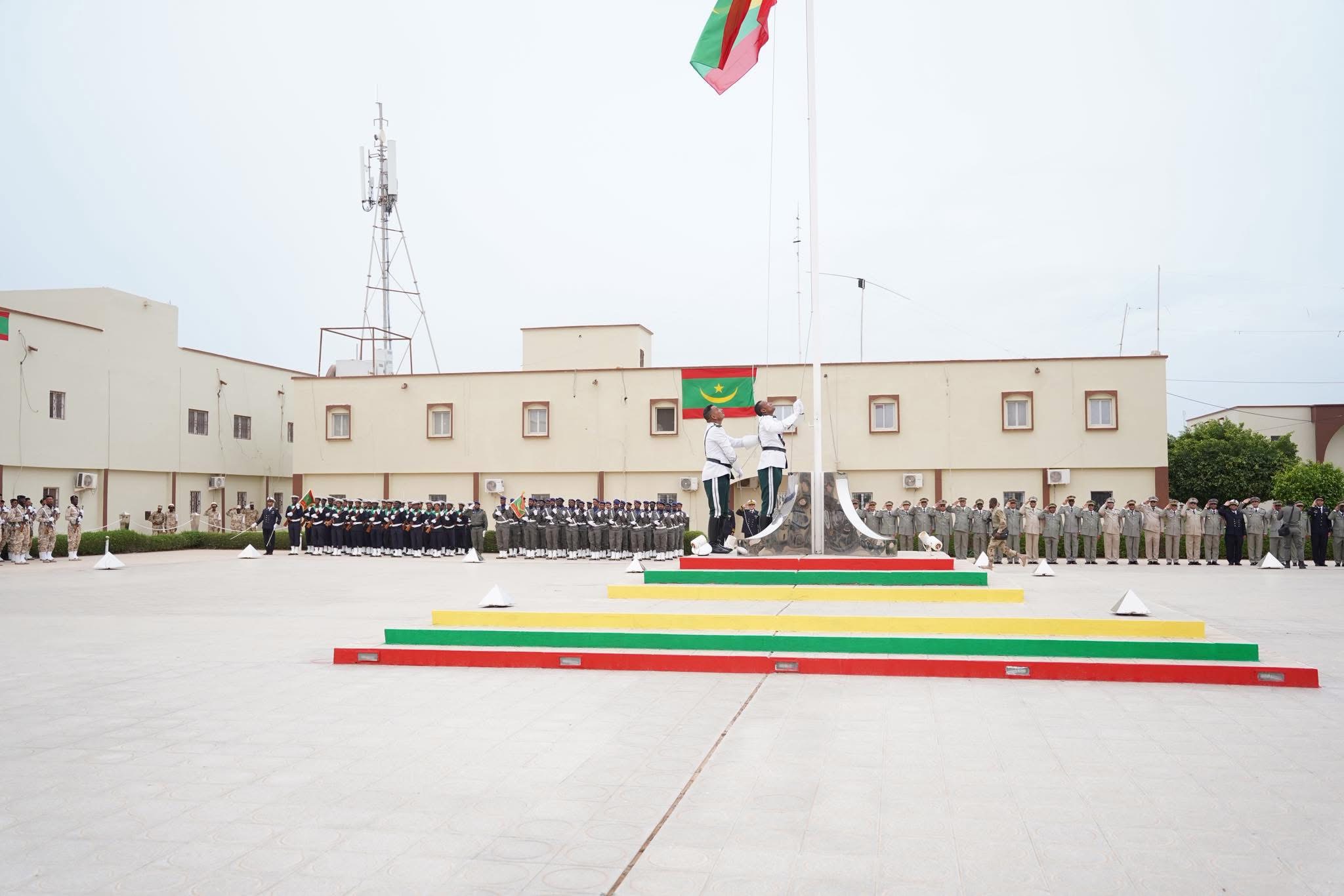 Cette glorieuse occasion a été célébrée par l’organisation d’une cérémonie de lever du drapeau national au siège de l’État-major général des armées à Nouakchott, sous la supervision de Son Excellence le ministre de la Défense, des Affaires des retraités et des enfants des martyrs, M. Hanana Ould Sidi, accompagné du ministre de l’Intérieur, de la Décentralisation et du Développement local, M. Mohamed Ahmed Ould Mohamed El Amin, ainsi que du chef d’état-major général des armées, le Général de division Mohamed Vall Rayess Rayess.