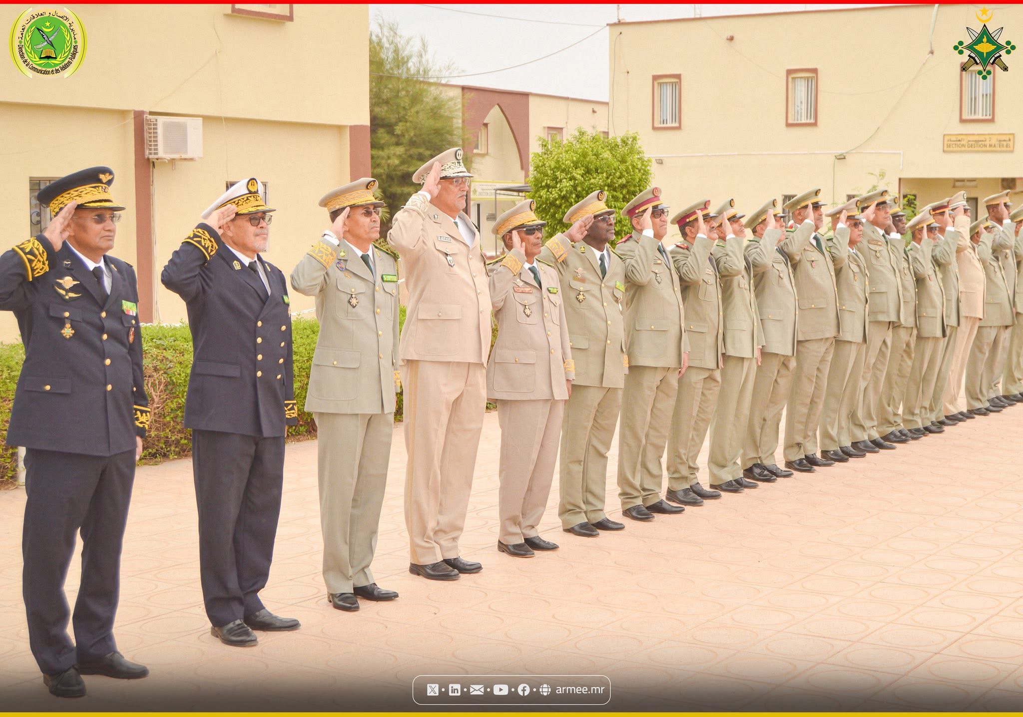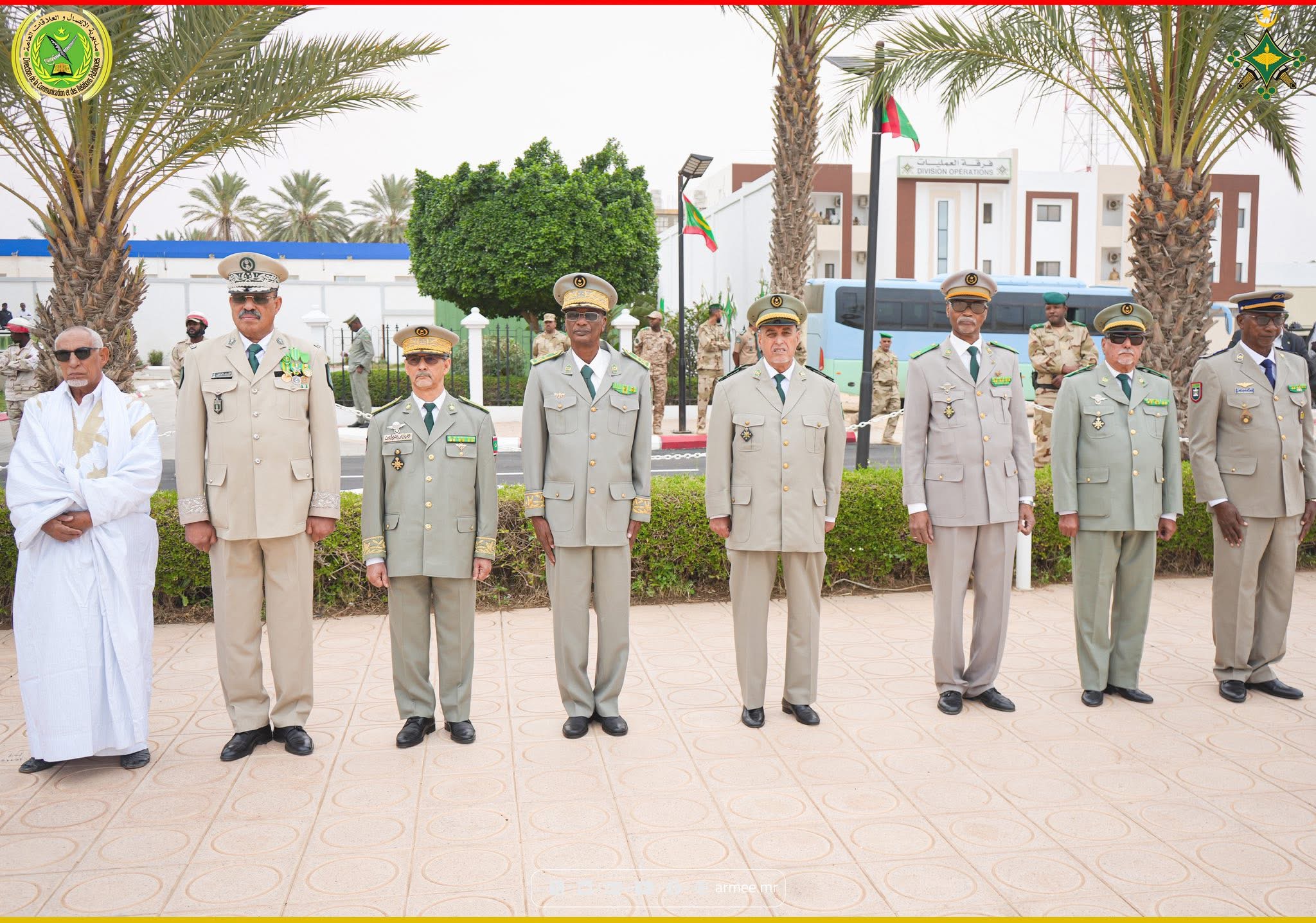 Ont assisté également à la cérémonie : le Général de division Brahim Vall Cheibani, chef d’état-major de la garde nationale ; le Général de division Mohamed Ould Cheikh Ould Boyda, chef d’état-major général adjoint des armées ; le Général de division Ahmed Mahmoud Mohamed Abdallah Taya, chef d’état-major de la gendarmerie nationale ; les commandants de l’armée de terre, de l’armée de l’air, de la marine et des forces spéciales ; le secrétaire général du ministère de la Défense, des Affaires des retraités et des enfants des martyrs ; un nombre de responsables des institutions militaires et sécuritaires ; les commandants des régions et des directions relevant des différents états-majors de l’armée, de la gendarmerie et de la garde nationales ; le wali de Nouakchott Ouest ; la présidente du Conseil régional de Nouakchott ; ainsi que le hakem de la moughataa de Ksar.