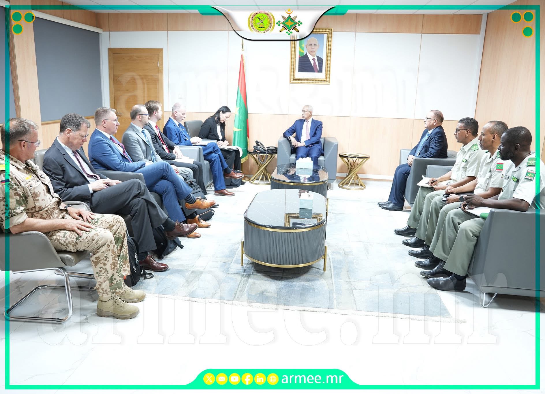 استقبل معالي وزير الدفاع وشؤون المتقاعدين وأولاد الشهداء؛ السيد حنن ولد سيدي، بمكتبه، صباح اليوم الثلاثاء 28 أبريل 2026، وفدا من وزارتي الدفاع والخارجية الألمانية.