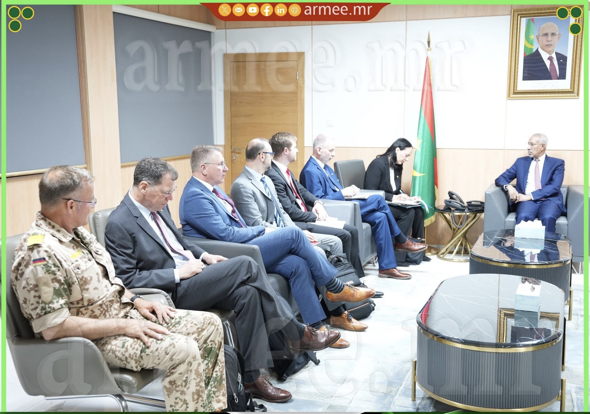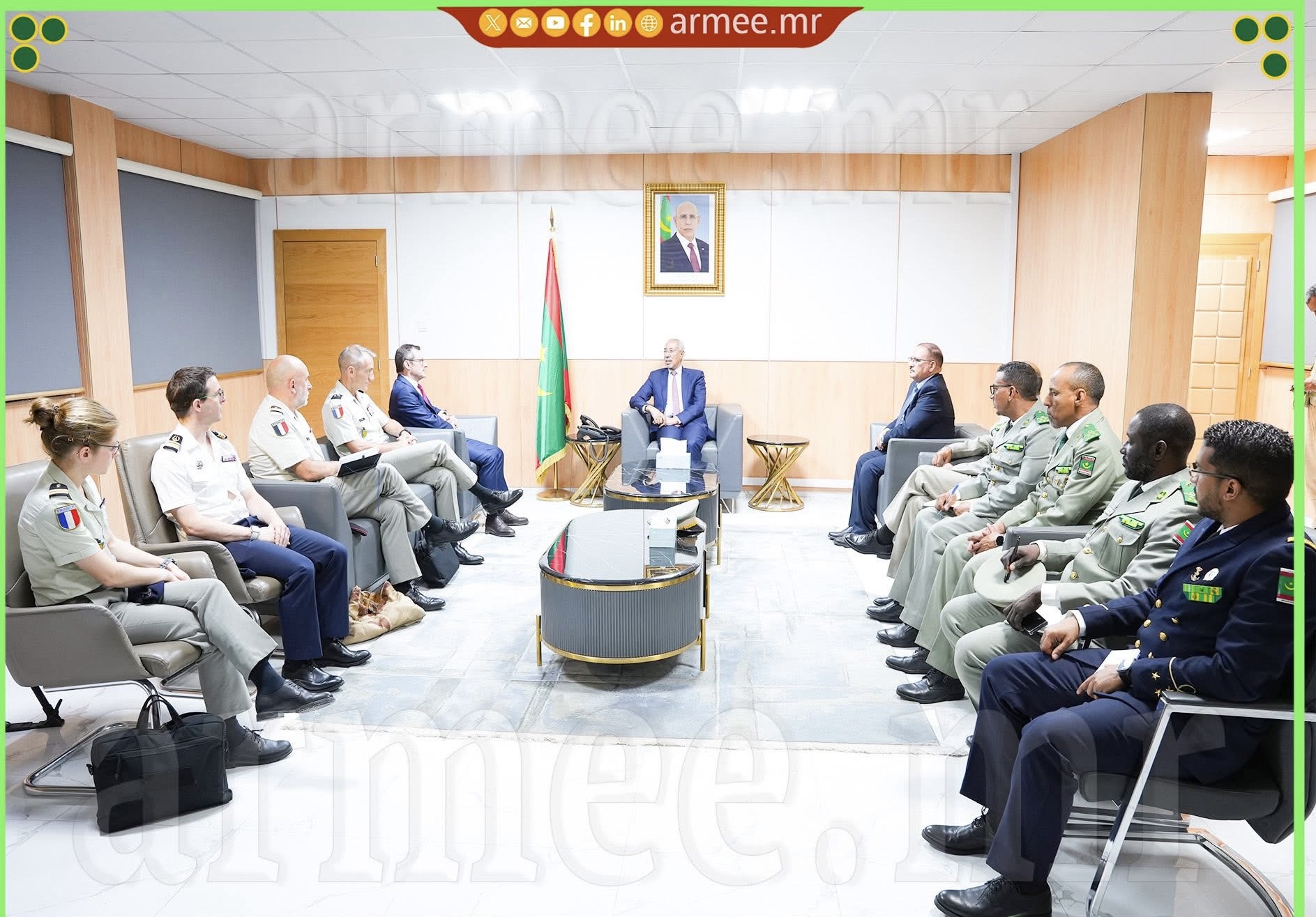 استقبل معالي وزير الدفاع وشؤون المتقاعدين وأولاد الشهداء؛ السيد حنن ولد سيدي، بمكتبه، زوال اليوم الثلاثاء 28 أبريل 2026، وفدا من جمهورية فرنسا، يرأسه سعادة السيد إيمانويل بسينيه؛ السفير الفرنسي الم
